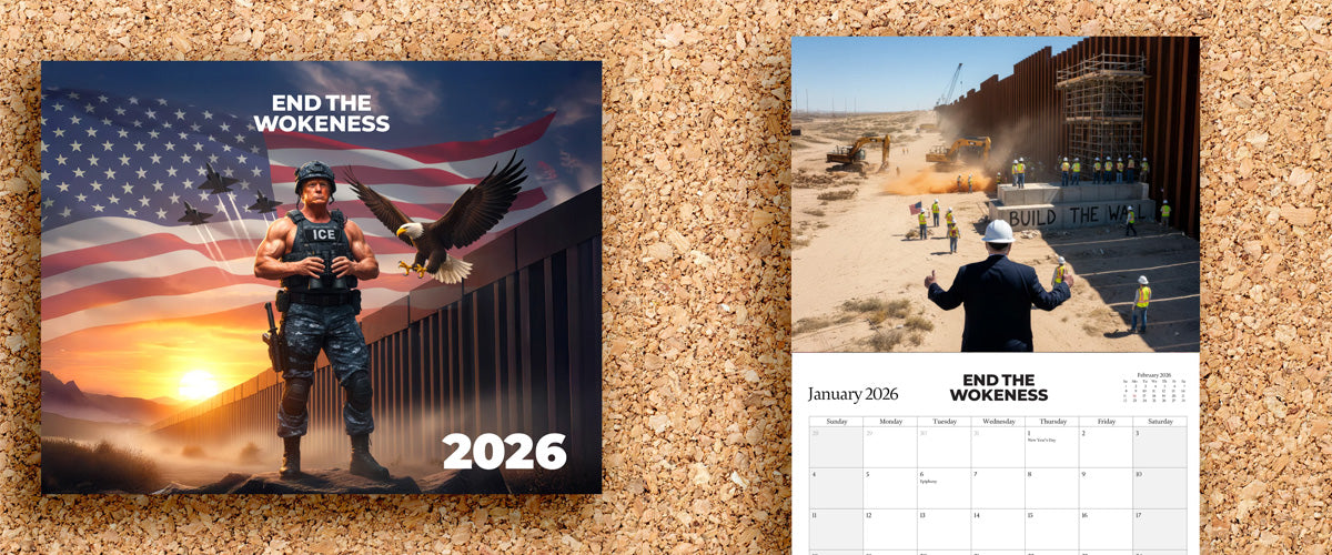 Become an End The Wokeness member and claim a FREE Trump 2026 border calendar! Membership benefits include $35 in store credit every 28 days and 40% OFF future orders! There's a three-day free trial, then your membership will auto-renew for $29.99 every 28 days. You can easily cancel anytime! Your order helps support a small, anti-woke business! Terms and conditions apply.